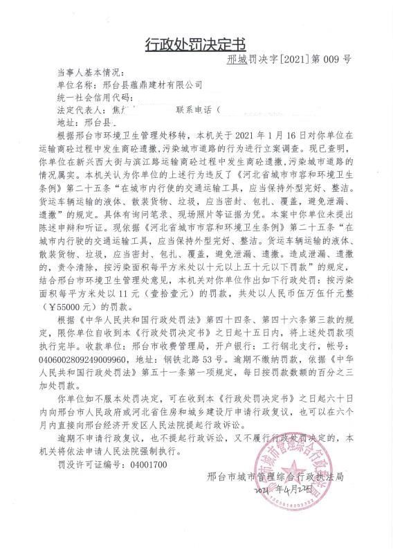 行政处罚公示(邢台县蕴鼎建材有限公司)